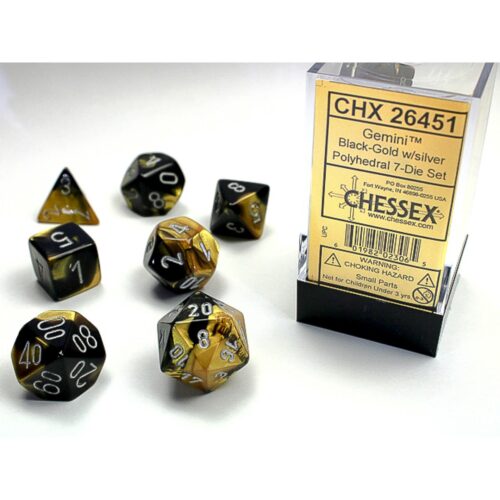 Chessex – Gemini Black-Gold w/silver Classic Polyhedral
