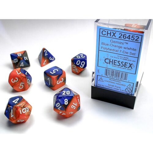 Chessex – Gemini Blue-Orange w/white Classic Polyhedral