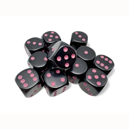 Chessex – Opaque Black/Pink D6 Set of 12 (16mm)