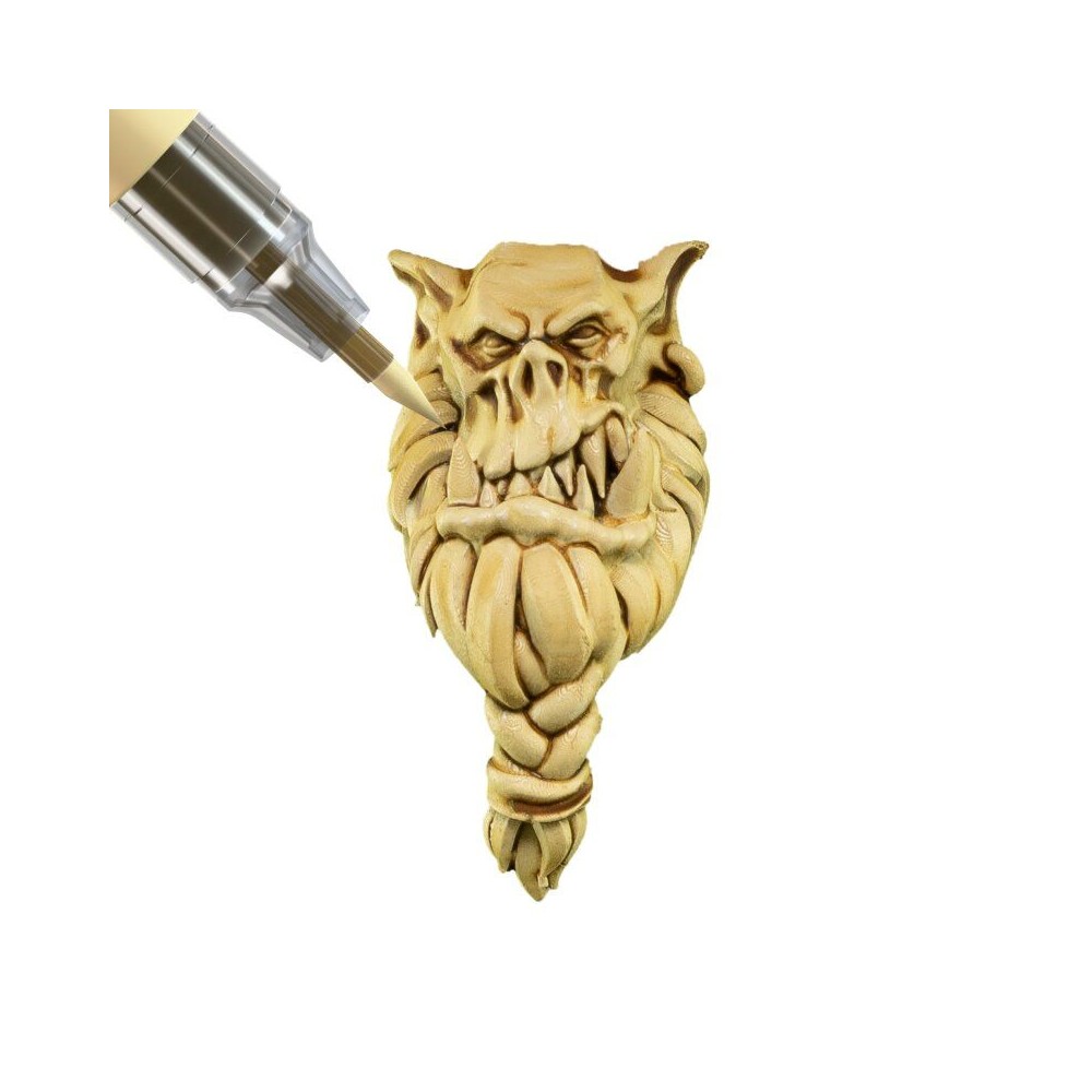 Pale, warm ivory for bone, parchment, and aged surfaces. High-pigment formula gives natural tone depth in one coat.