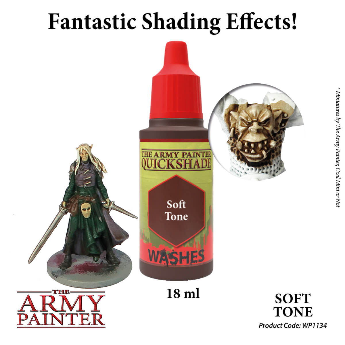 The Quickshade Tone Wash range is loaded with heavy pigment in the popular Warpaints ink resin base. Use on top of white for an instant toned and shaded miniature or on top of colours for extra depth and shading.