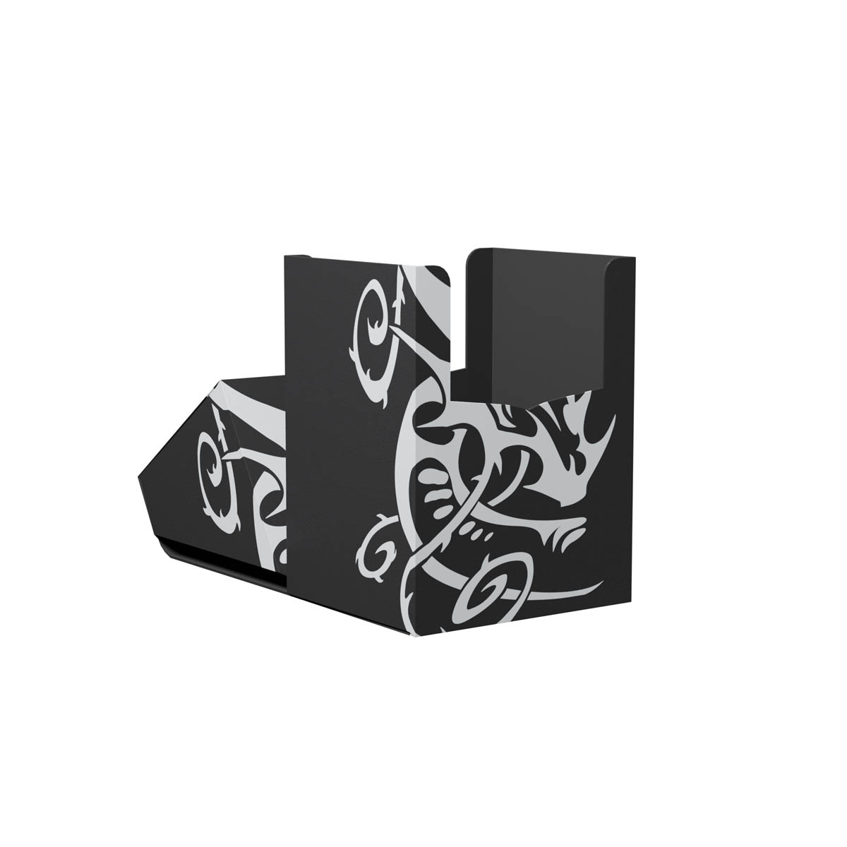 The new and improved Dragon Shield Deck Shell is a sturdy flip-case with a deep cut out. The lid won’t pop open unexpectadly and can be set under the box so it stays open, giving a minimal footprint and easy access to cards. The Deck Shell fits inside large Nest boxes and Magic Carpets. Cube Shells will fit inside the Deck Shell. Each Deck Shell comes with a divider and has a writing field on top for personalization. The Deck Shell will fit 100 single sleeved cards or 80 sealable double-sleeved cards.