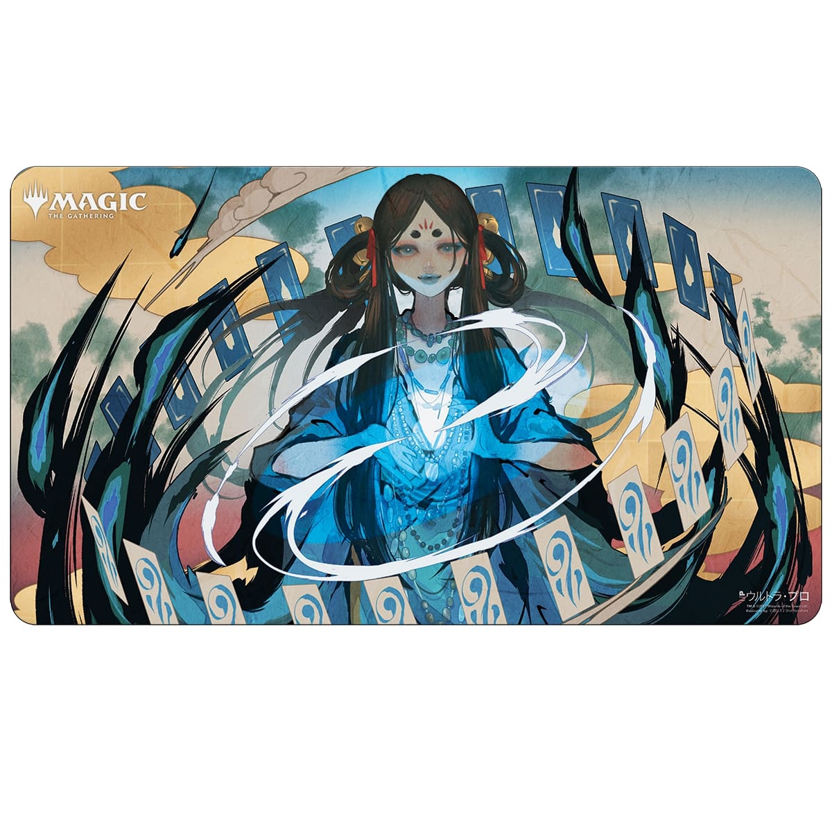 Up your game at your next game night with this official Magic: The Gathering playmat showcasing highly detailed and vibrant artwork from popular trading card game. Made with a premium fabric top to prevent damage to cards during game play for tabletop gamers. With dimensions of approximately 24″ X 13-1/2″, this playmat is also the perfect decorative over sized mouse pad for computer and laptop workstations. Non-slip rubber backing lets the playmat lay flat and prevents it from shifting during use.
