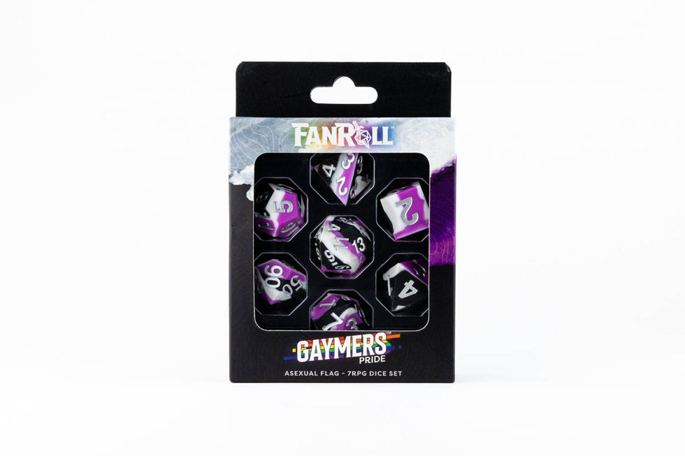 FanRoll is proud to announce the Gaymers Pride line of products! Our Gaymers Pride line features 9 flags of the LGBTQIA+ community represented in the form of Sharp-Edge Silicone Dice and Dice Rolling Trays! Trangender, Lesbian, Gay Men, Bisexual, Pansexual, Intersex, Non-Binary, Asexuals, and the Pride Inclusion Flag all have their colors included in these dice. Each full-sized, 16mm set comes with 7 dice (d4, d6, d8, d10, d10% (00-90), d12, and d20).