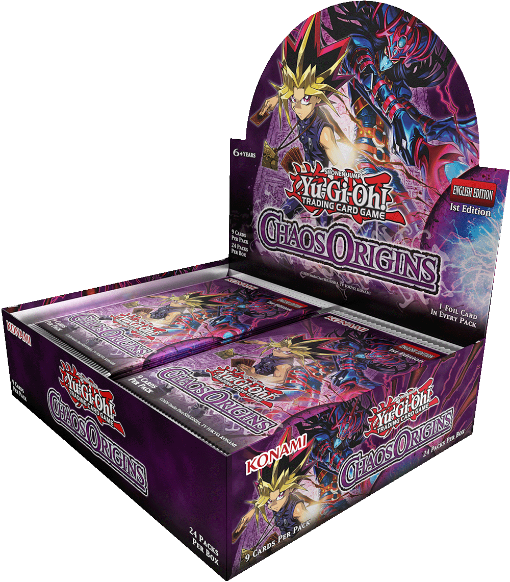 Get ready for the Duel of your life! Chaos Origins brings back the one-and-only legendary King of Games, with some of his favorite monsters from the original Yu-Gi-Oh! manga and anime! Featuring Yami Yugi on the pack and box, this new 100-card booster set reimagines monsters like Black Luster Soldier and Magician of Black Chaos, with powerful new effects designed to compete in today’s tournaments. Plus, FIVE frame-breaking extended art cards that will bring your Duels to life like never before!