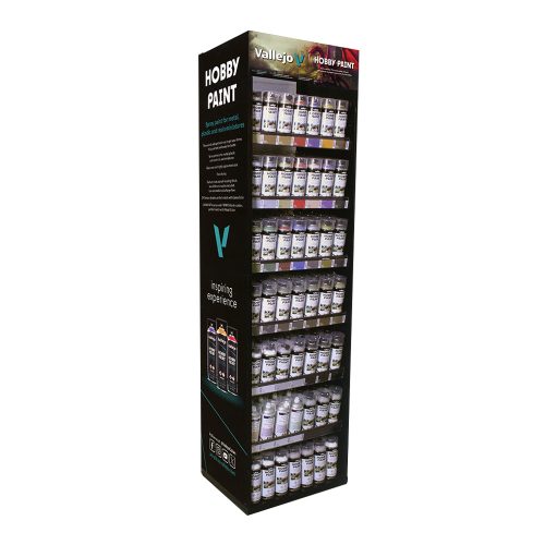 Vallejo - Model Color - Hobby Range - 80 colors in 18 ml bottles. Countertop Metallic Display, contains model colour. Width: 67cm Depth: 23cm Height: 70cm.For a complete list of products available on Vallejo racks please click here.